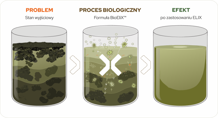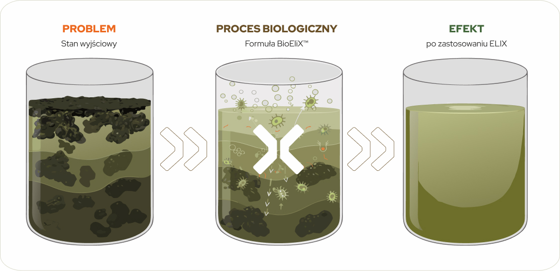Oparty na Formule BioEliX™ — biologiczny „eliksir” przyspieszający rozkład materii organicznej, poprawiający płynność gnojowicy i zwiększający jej wartość nawozową.